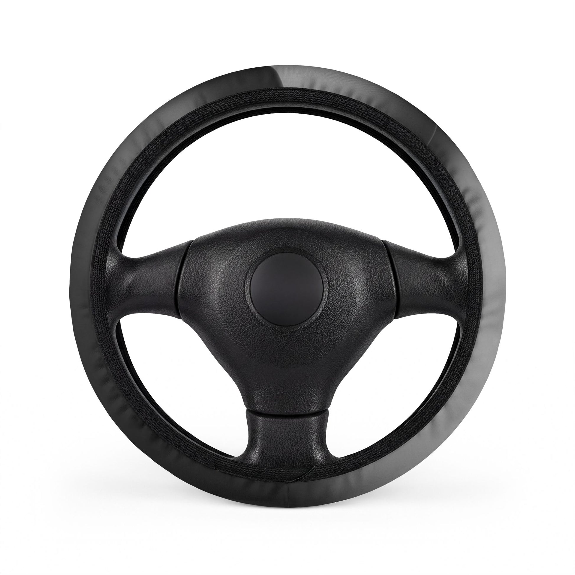 A snug, all-over printed steering wheel cover crafted from neoprene-style polyester that brings comfort, grip, and subtle style to every drive. The soft, eco-conscious fabric cushions your hands while the non-slip inner surface keeps the cover firmly in place, even during long trips or quick maneuvers. Installation is simple — stretch the cover onto the wheel and smooth it out for a secure fit. Its durable construction resists wear and keeps its look through daily use, making the wheel feel warmer in cold weather and less slick in heat. This cover is designed for adult drivers who want a practical upgrade to the everyday driving experience.