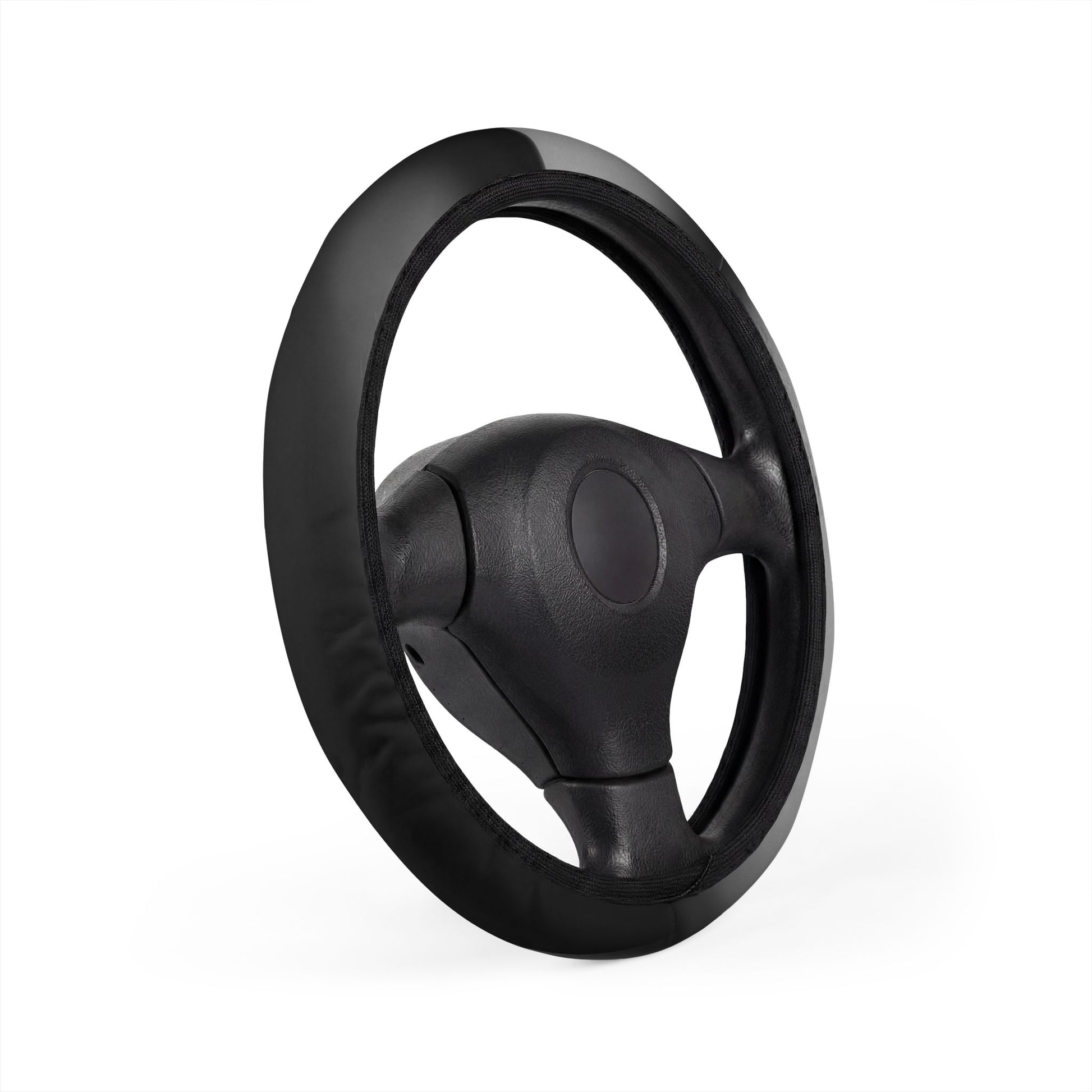 Black Leatherette Steering Wheel Cover — Durable Grip & Universal Fit