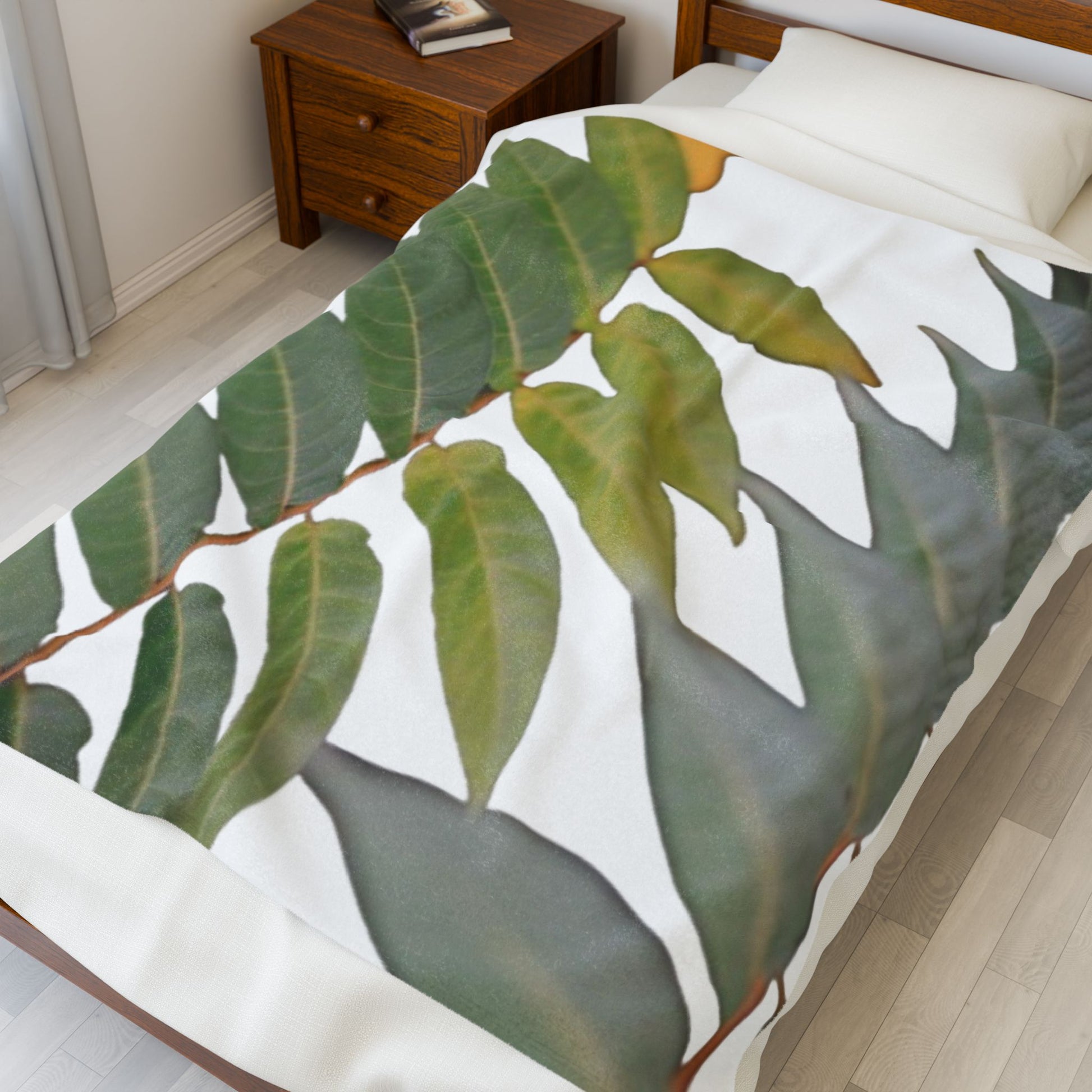 Botanical Velveteen Plush Blanket – Green Leaf Foliage Throw