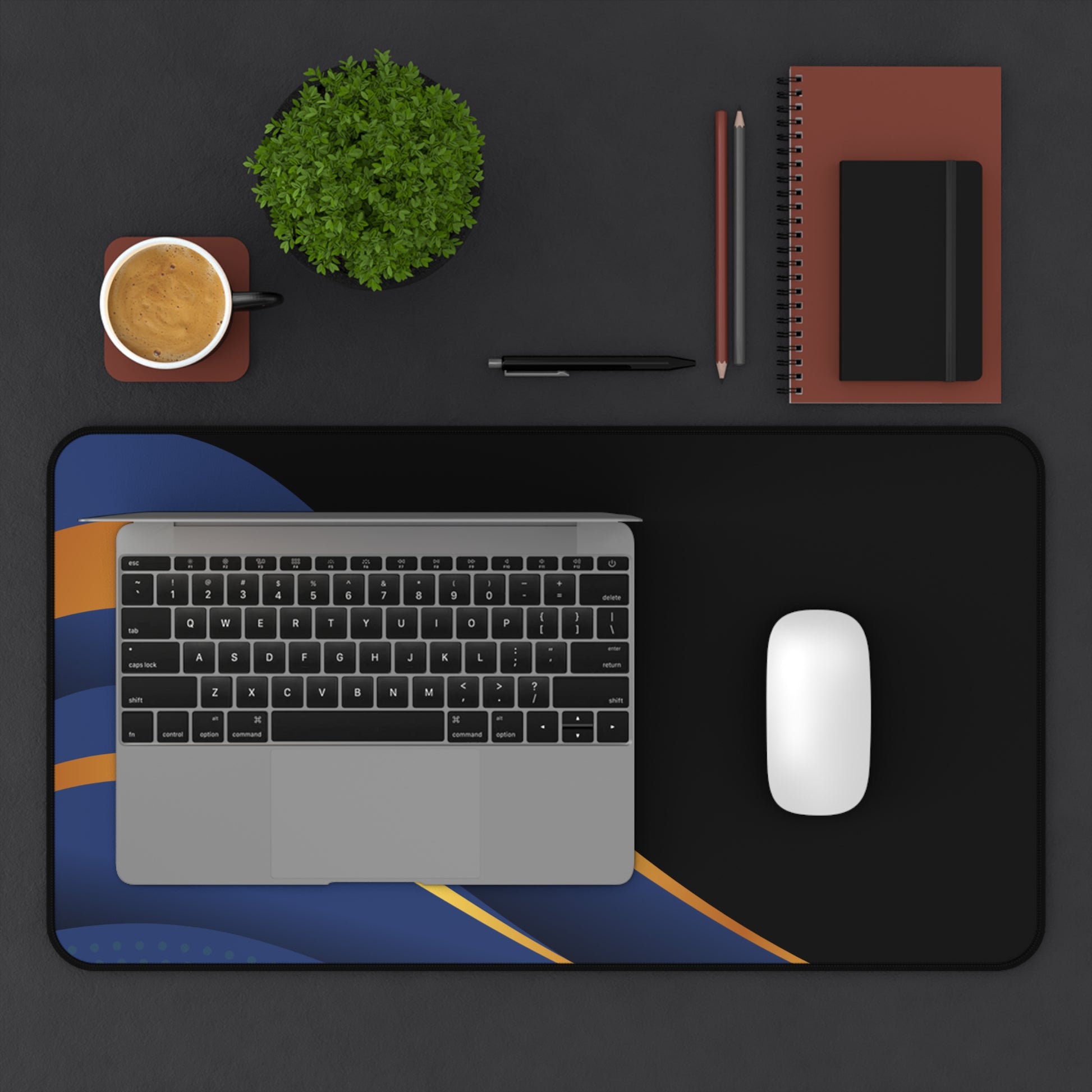Desk Mat — Sleek Navy & Gold Wave Gaming/Office Mouse Pad