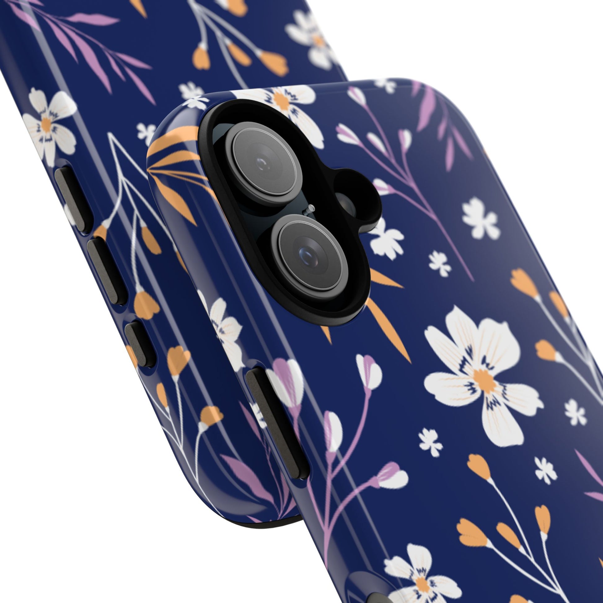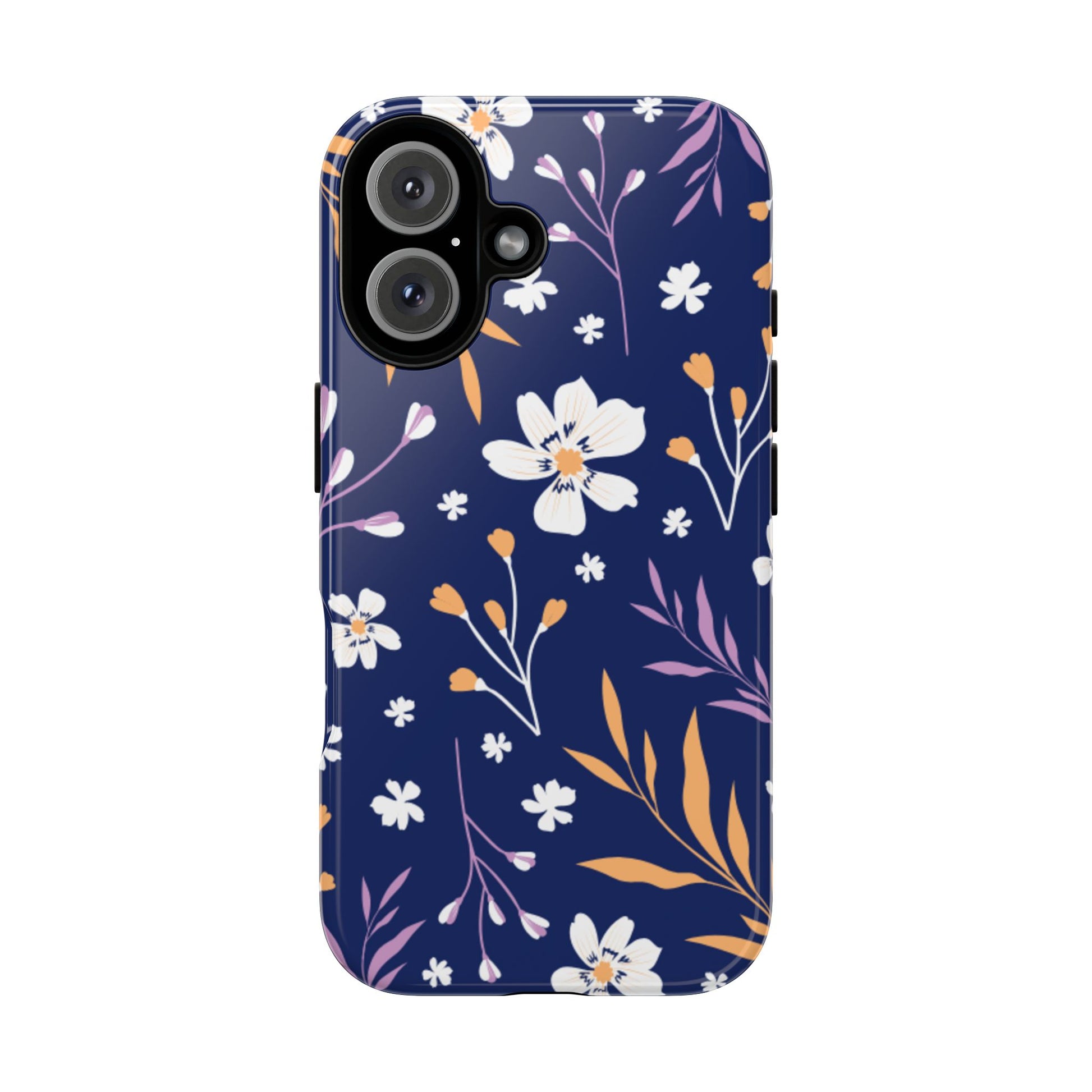 Floral Navy Tough Phone Case — Protective Floral iPhone Cover