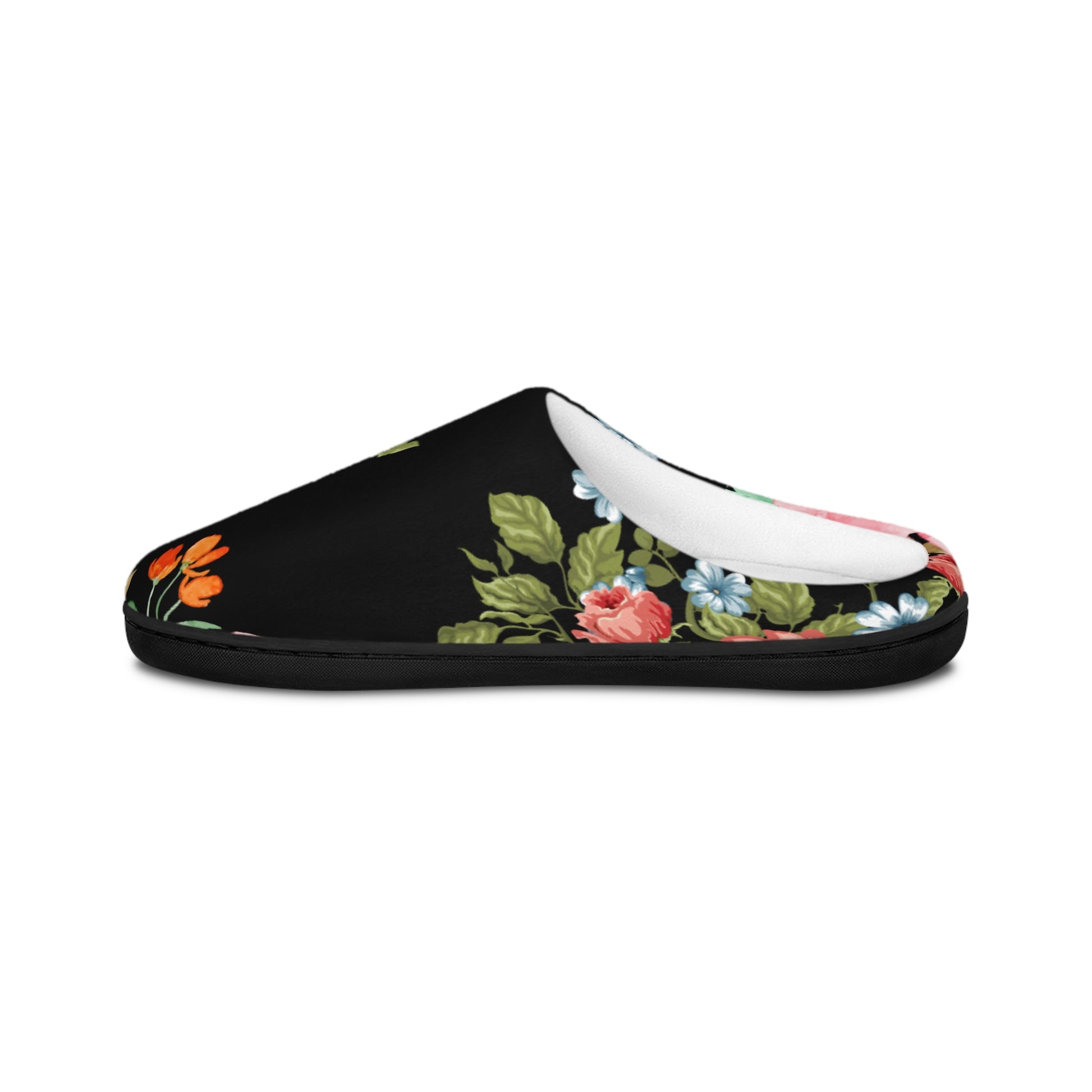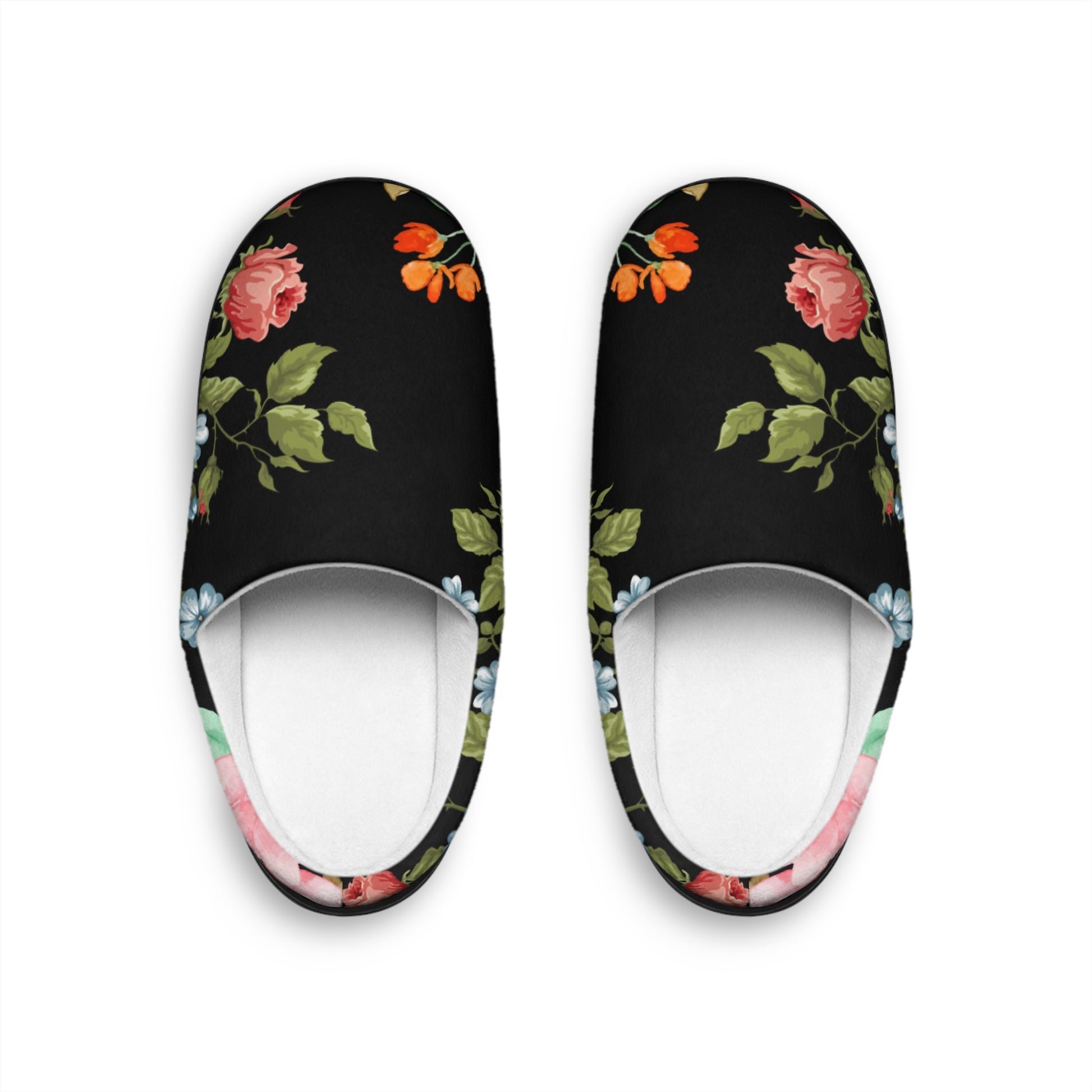 Floral Velvet Indoor Slippers — Women's Cozy Black Rose Slip-Ons