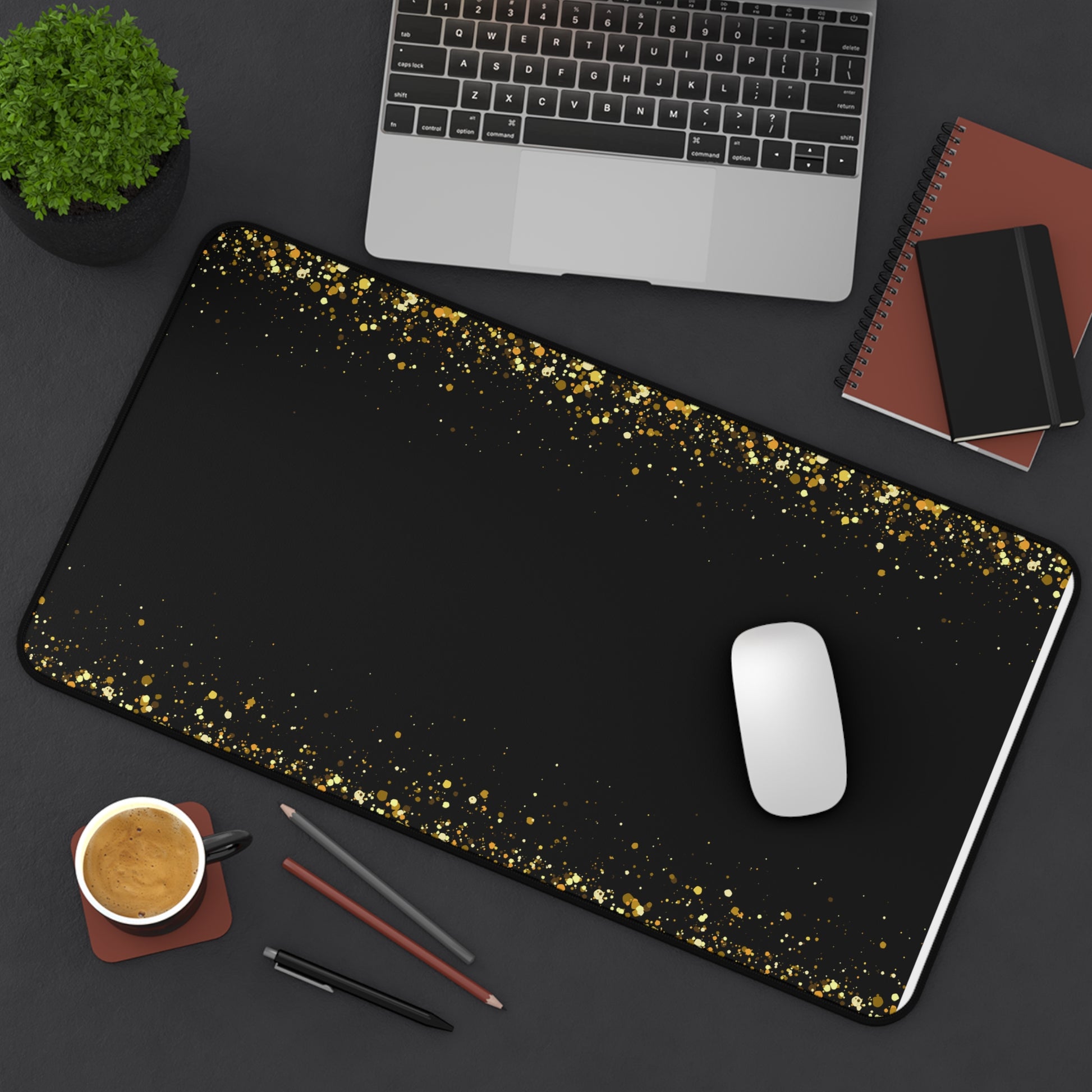 Gold Glitter Edge Desk Mat — Black Glamorous Mousepad for Office & Home