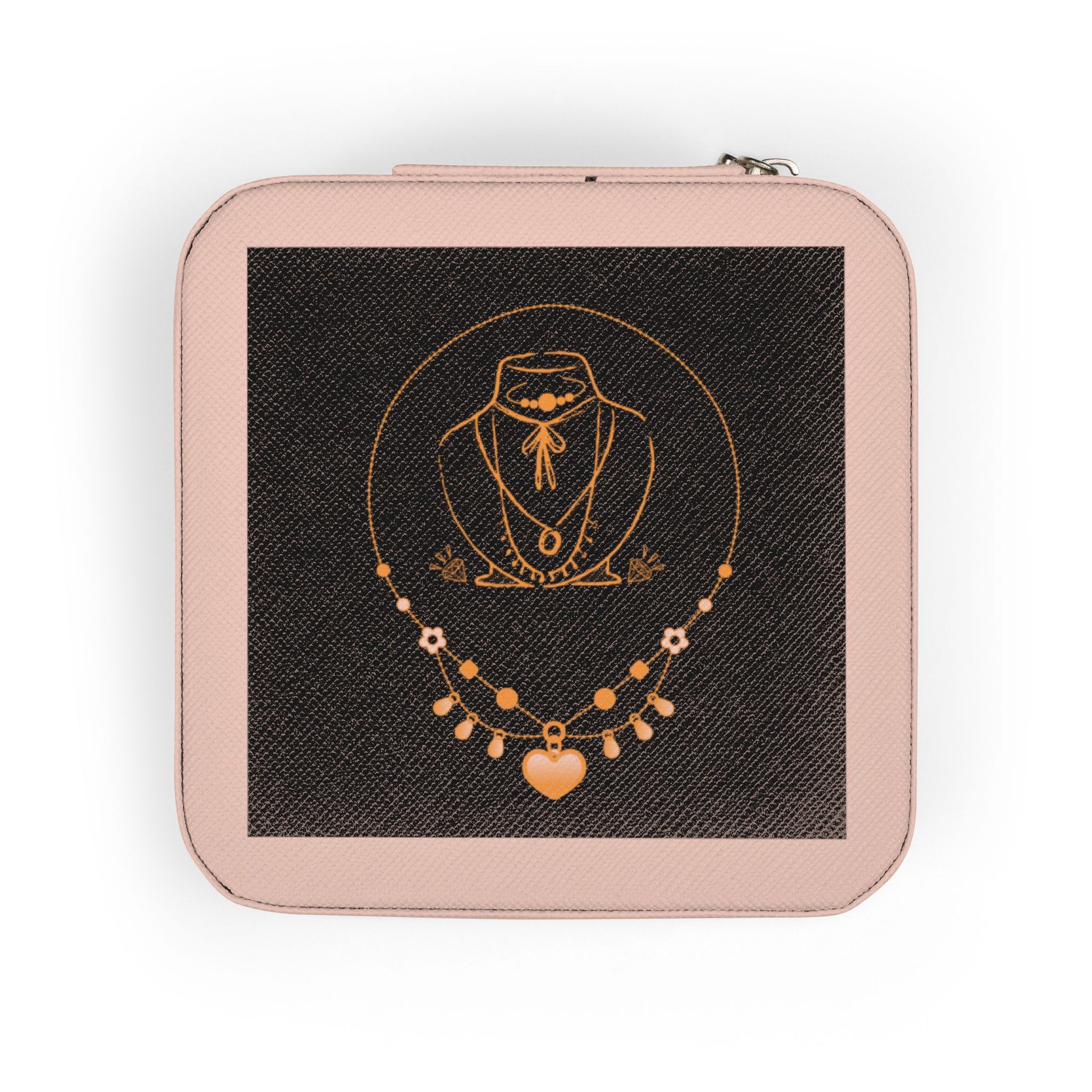 A compact jewelry travel case that keeps treasured pieces safe and beautifully organized. Soft PU leather wraps a plush, scratch-resistant interior with divided compartments, ring rolls and necklace hooks so chains stay untangled and rings stay cushioned. The square zip-around design closes securely, slipping easily into a purse or carry-on without taking up space. Subtle UV-printed decoration on the lid adds a personalized touch without overpowering the case’s elegant, minimalist look. Carry it on weekend getaways, business trips, or tucked into your daily bag for on-the-go touch-ups and worry-free storage.