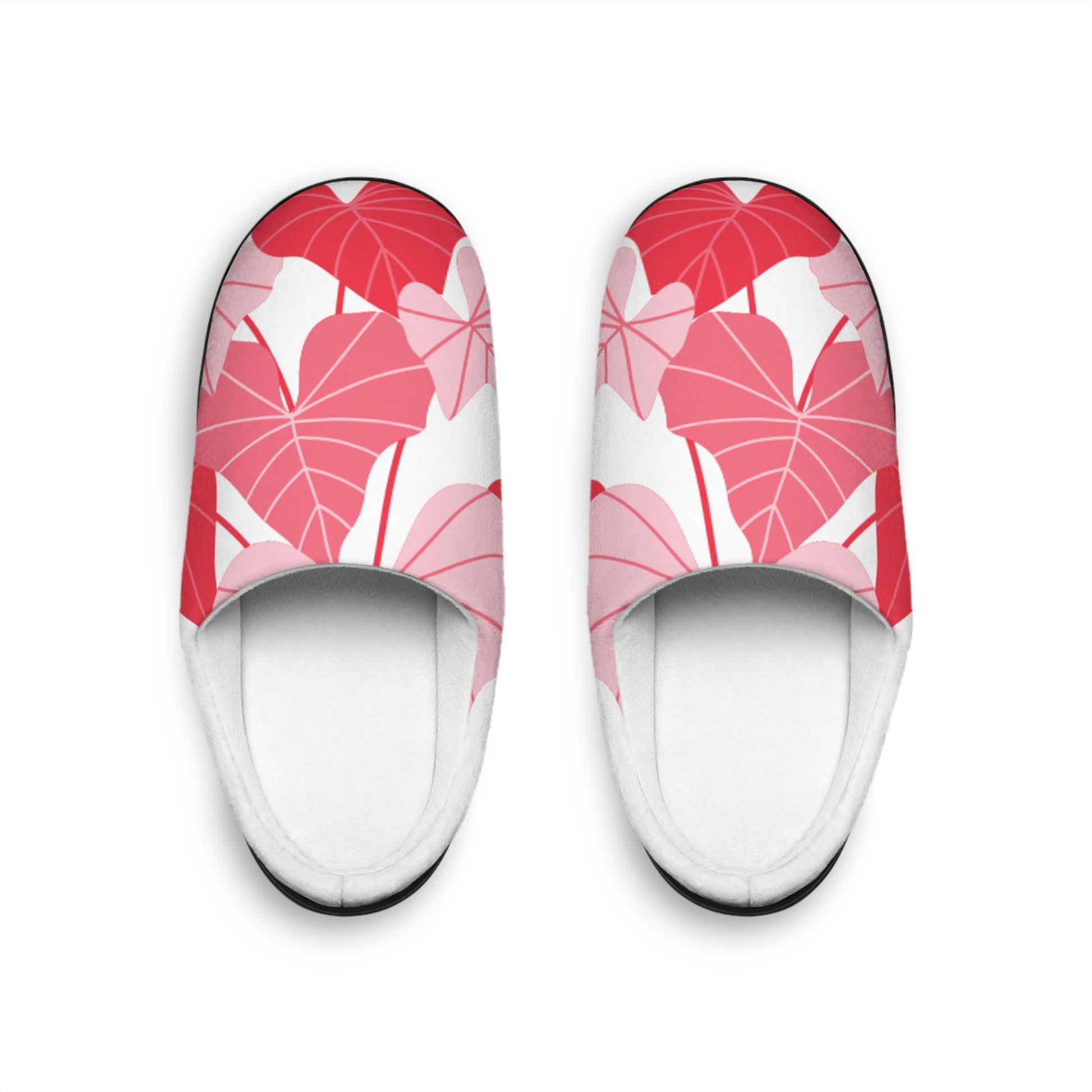 Pink Tropical Leaf Women's Indoor Slippers — Cozy Floral House Shoes