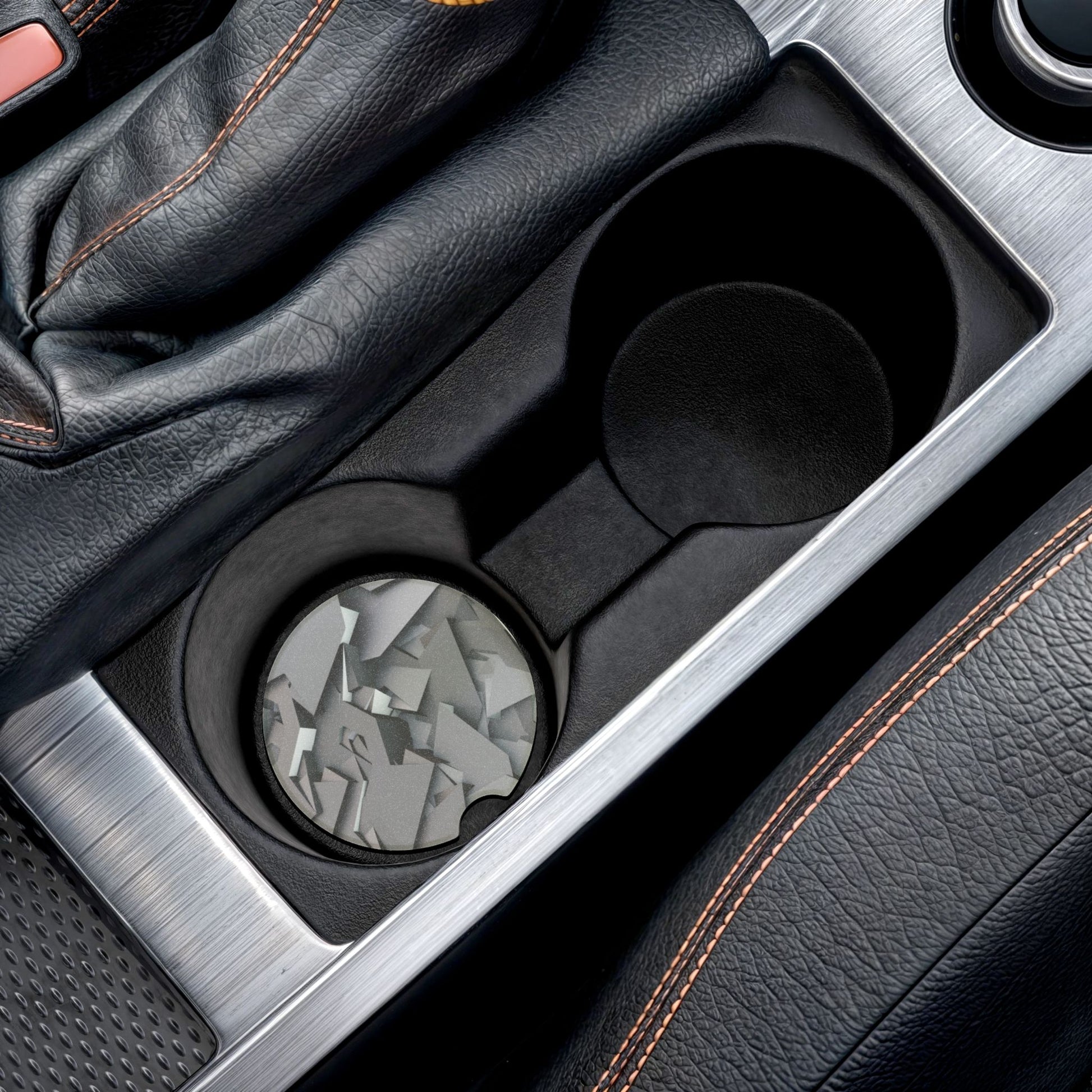 Soapstone Car Coaster — Gray Geometric Stone Pattern Car Cup Holder Coaster