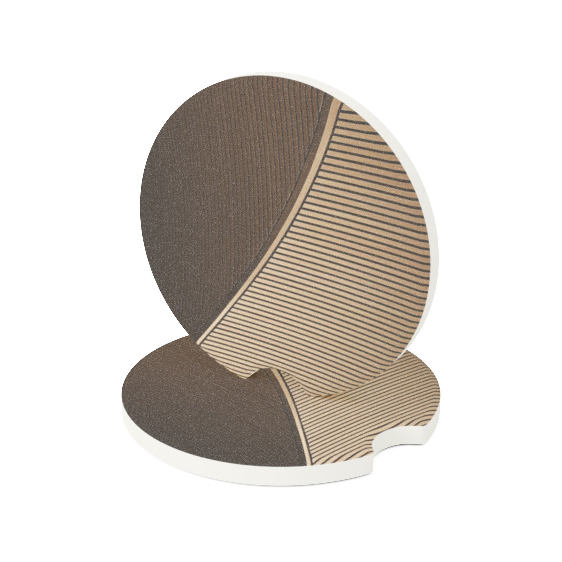 A hand-crafted soapstone car coaster with a warm, earthy graphic that brings quiet texture to your drive. The design pairs deep graphite tones with fine sand-colored lines, forming a calming curve that feels like a stretch of road or a horizon at dusk. It slips neatly into most cup holders, quietly absorbing condensation so your cup area stays clean. The matte surface keeps glare low and the single-sided print preserves the stone’s natural feel. Choose a single coaster or a set of 2 or 4 to match your routine — a small, tactile detail that turns ordinary coffee stops into a calm, tactile moment.