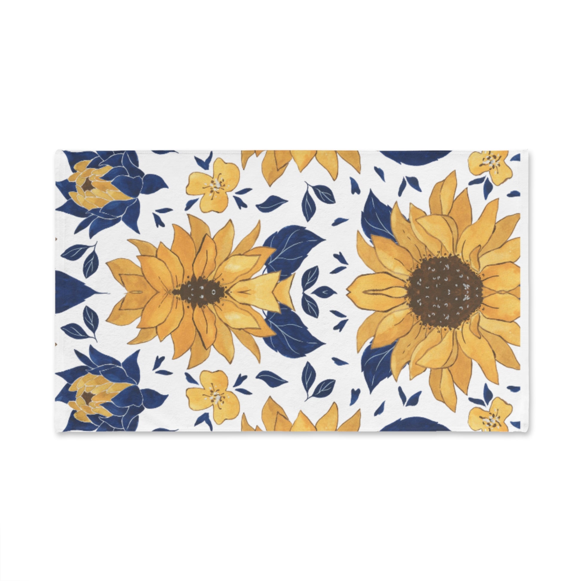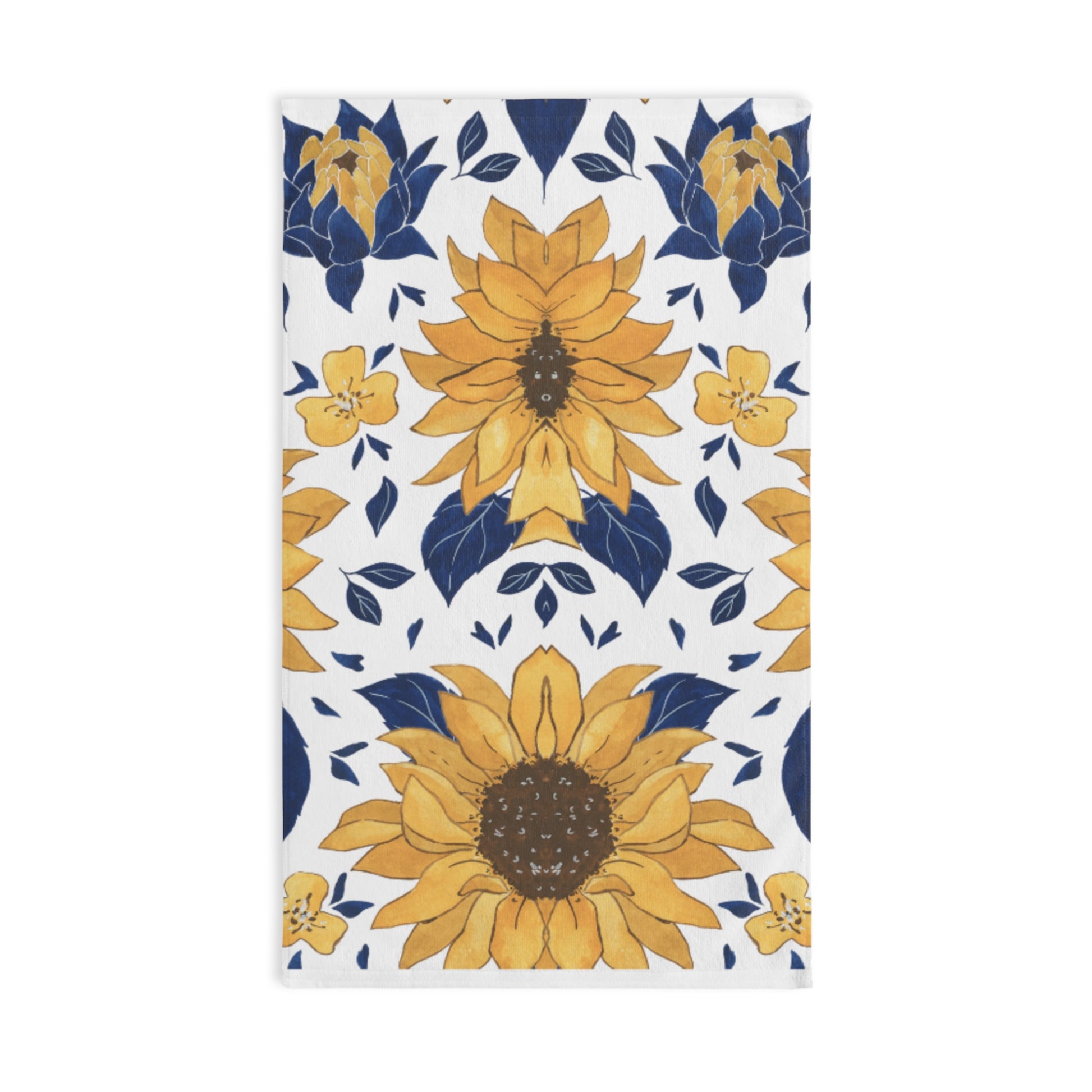 Sunflower Pattern Hand Towel — Yellow & Navy Floral Kitchen Towel