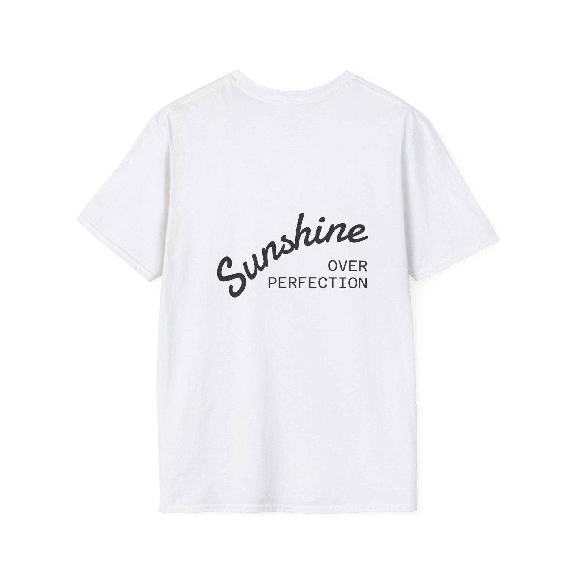Light, breathable, and quietly optimistic — this lightweight tee carries a gentle message meant for slow mornings and long walks. A soft cream square on the chest holds the words “Every sunrise is a second chance to shine,” while the back whispers a breezy script: “Sunshine over perfection.” Wear it when you need a small reminder to start again, when coffee tastes better on the porch, or when you’re choosing calm over hustle. The smooth ring-spun cotton feels comfortable all day and the clean crew neck keeps the look simple so the message can do the talking. It’s the kind of shirt that fits easily into a relaxed wardrobe and becomes one of those pieces you reach for when you want to show up hopeful and steady.