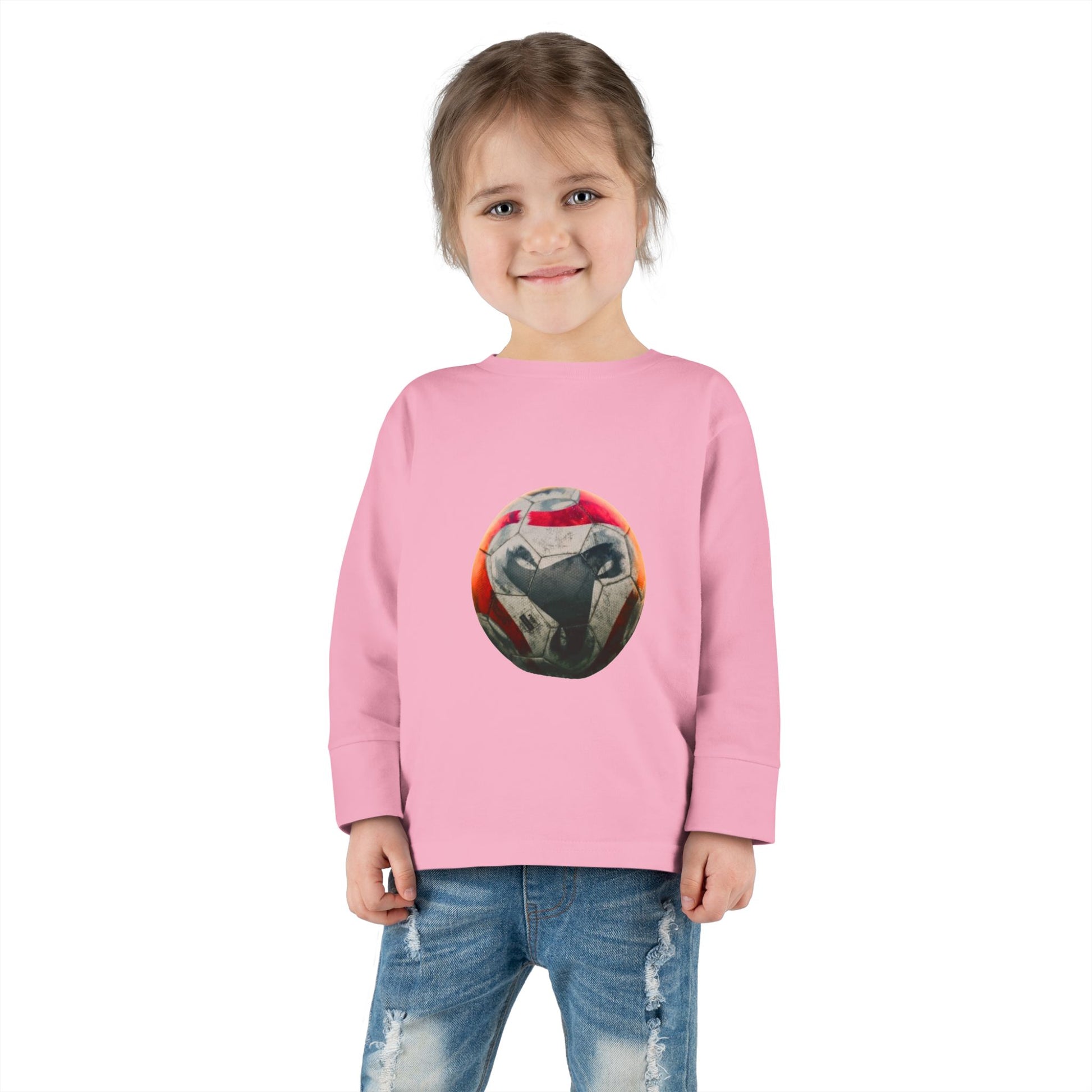 Toddler Long Sleeve Tee — Colorful Soccer Ball Graphic Kids Shirt