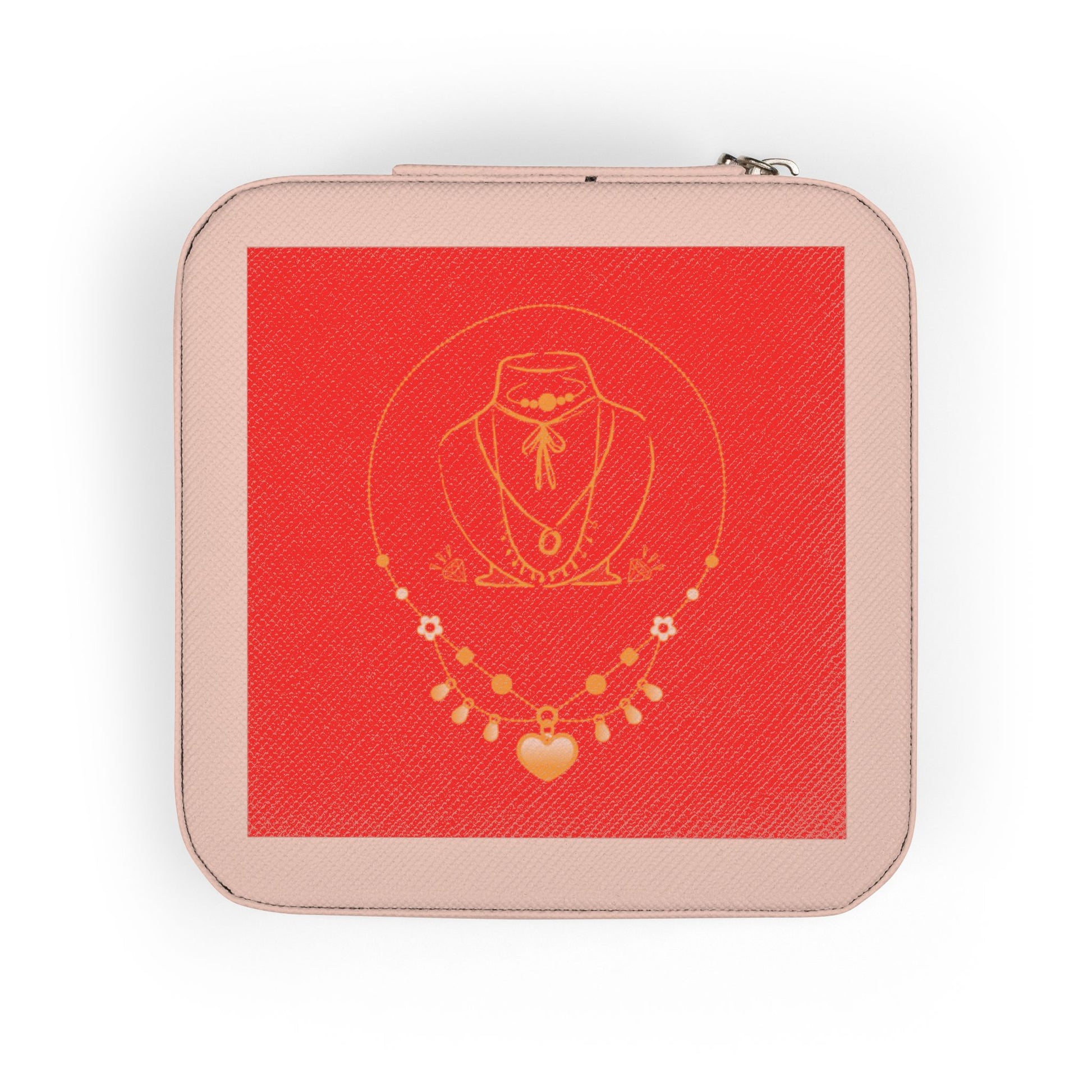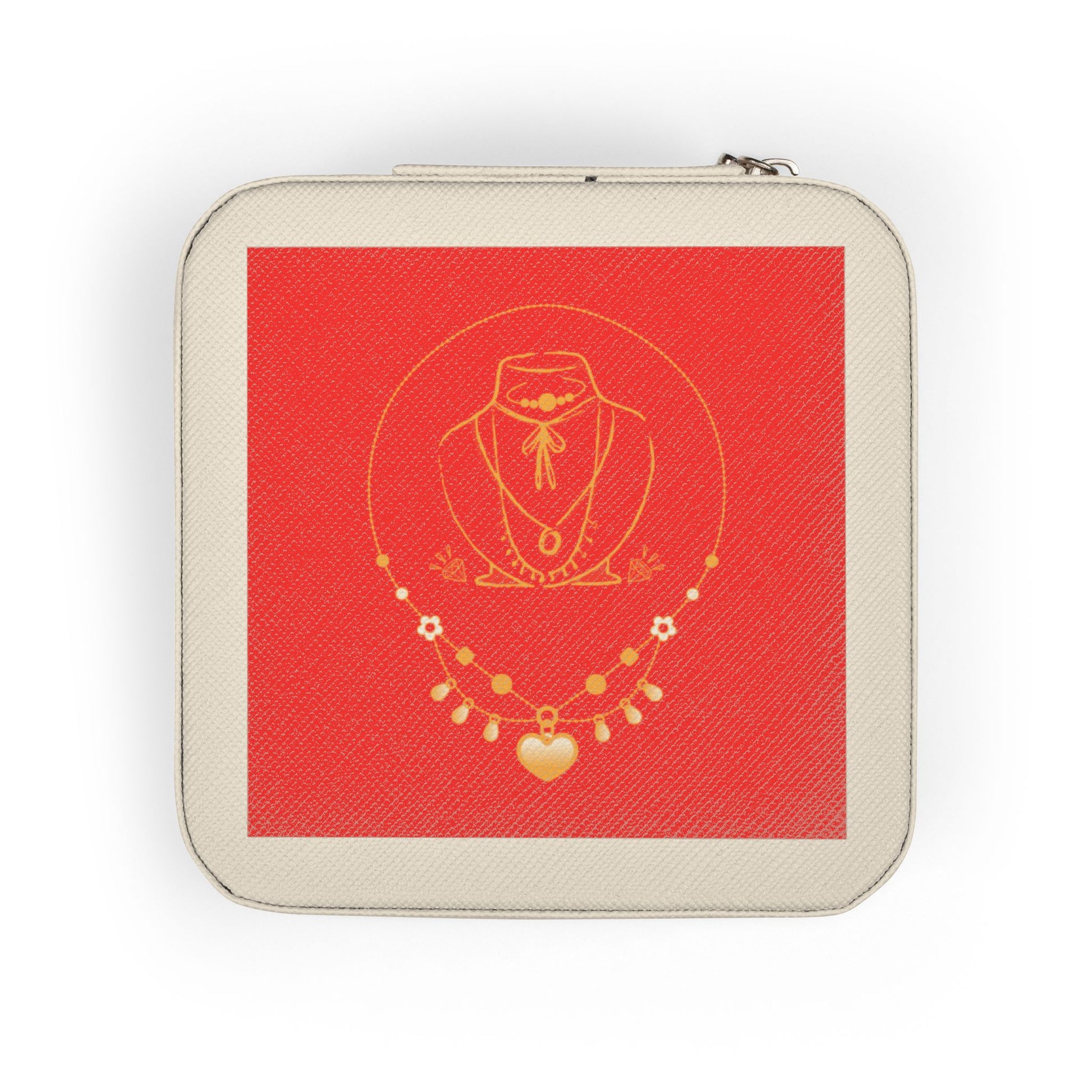 Travel Jewelry Case — Red Gold Necklace Design Compact Organizer