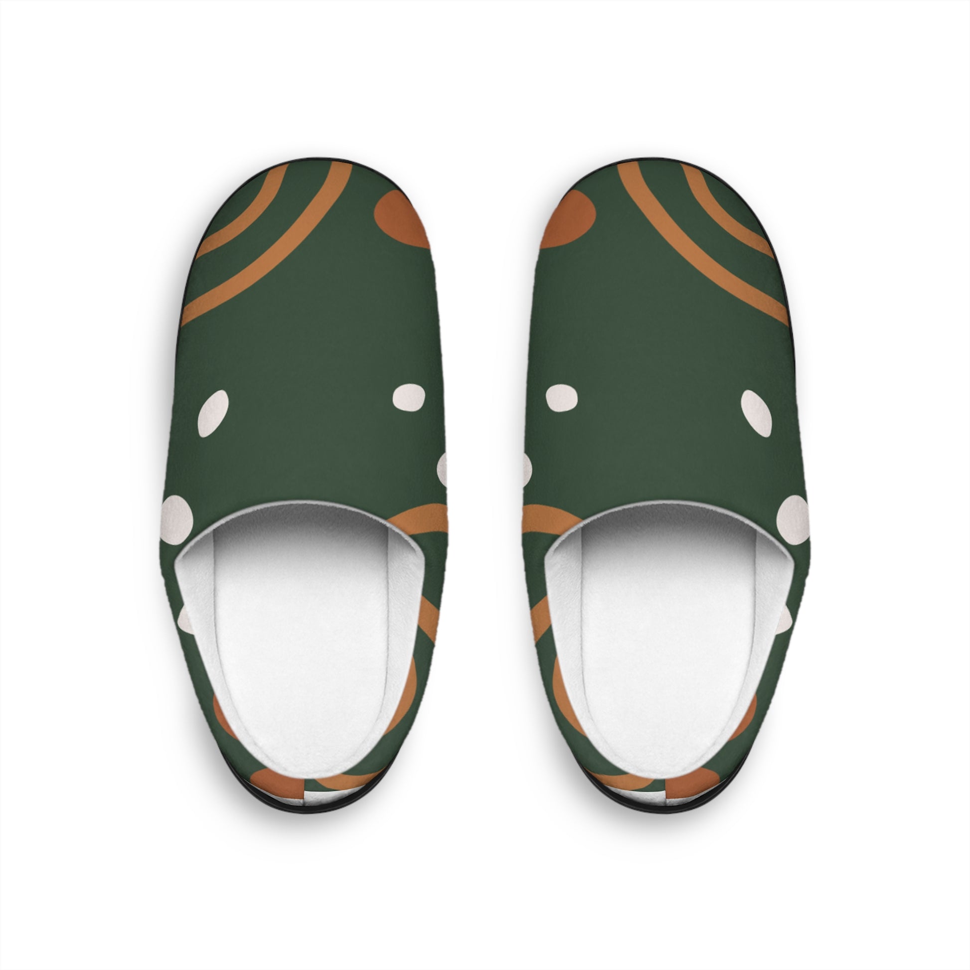 Women's Indoor Slippers — Green Abstract Dot & Curve Cozy House Slippers