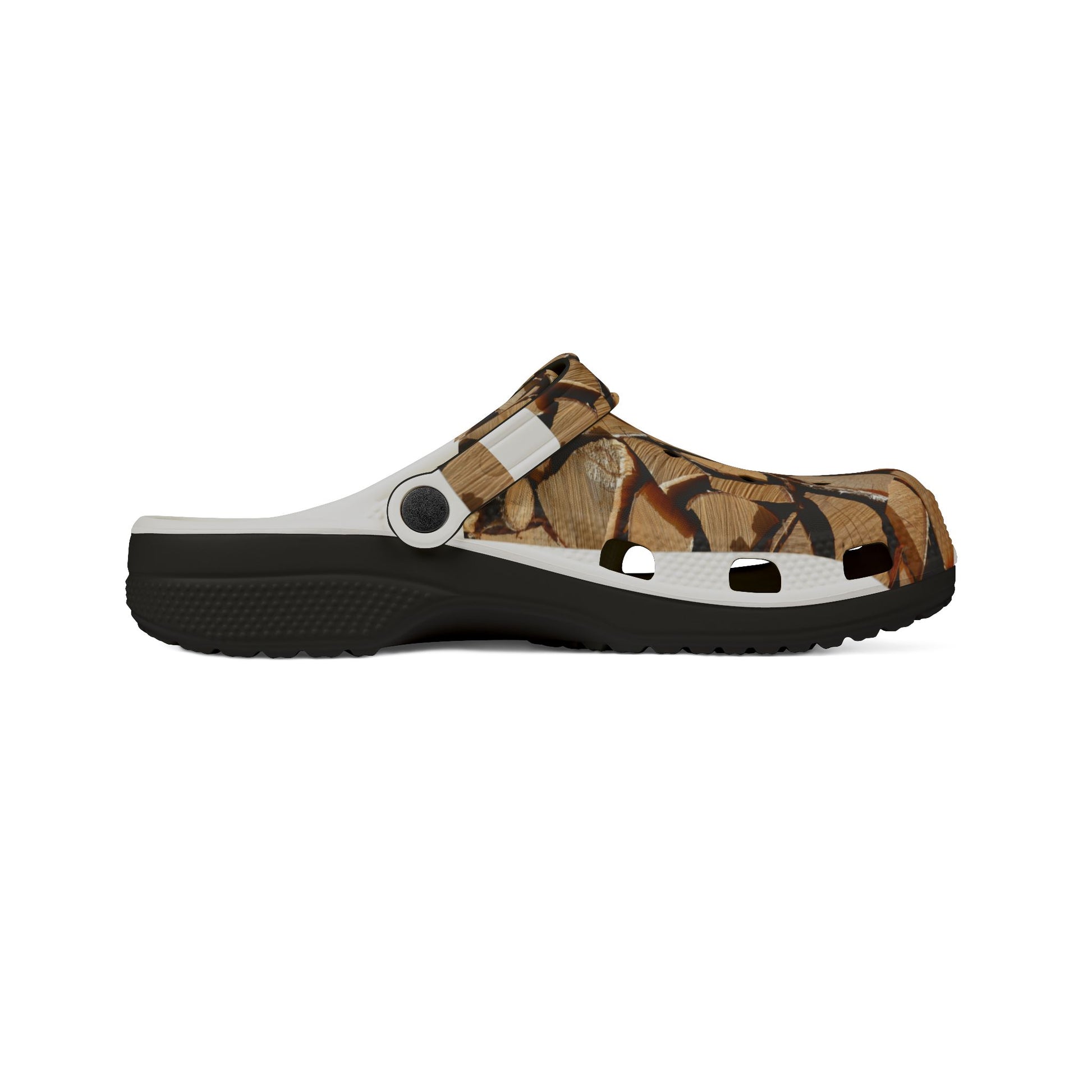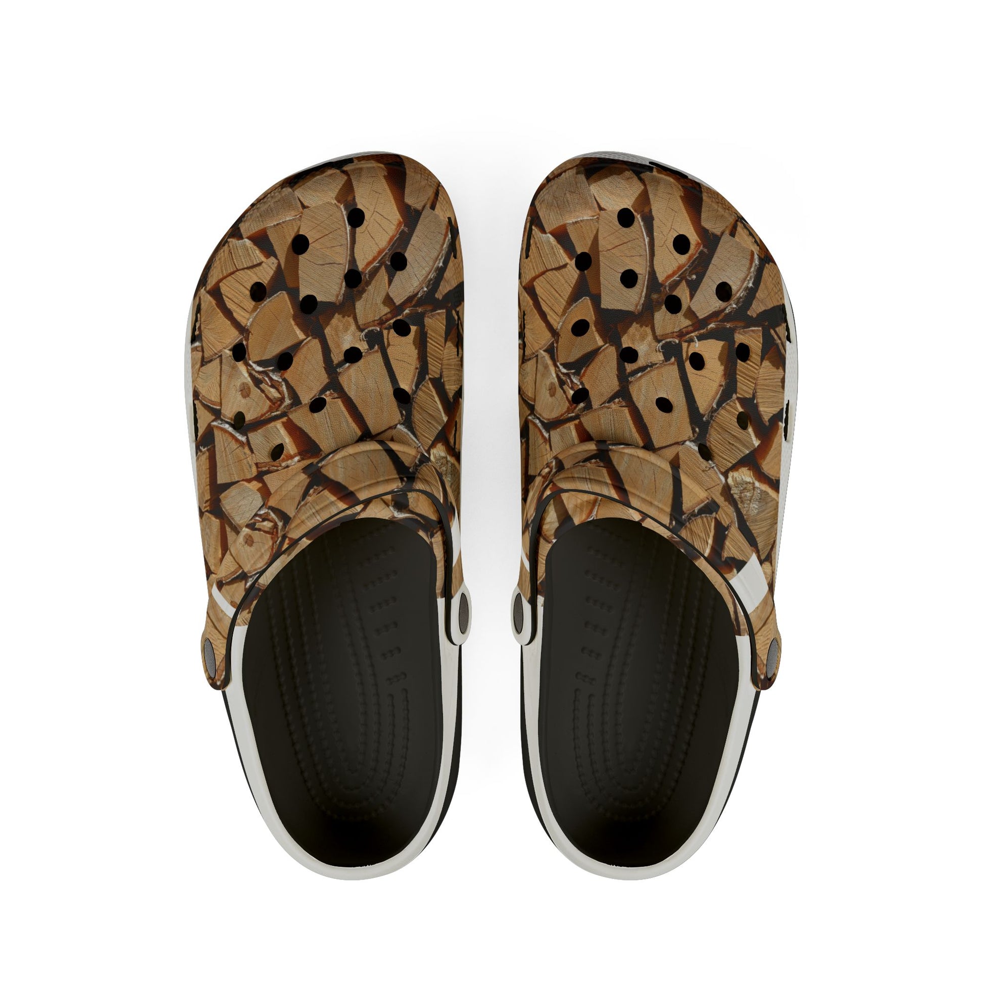 Woodpile Clog Shoes — Cozy Cabin Log Print EVA Foam Clogs
