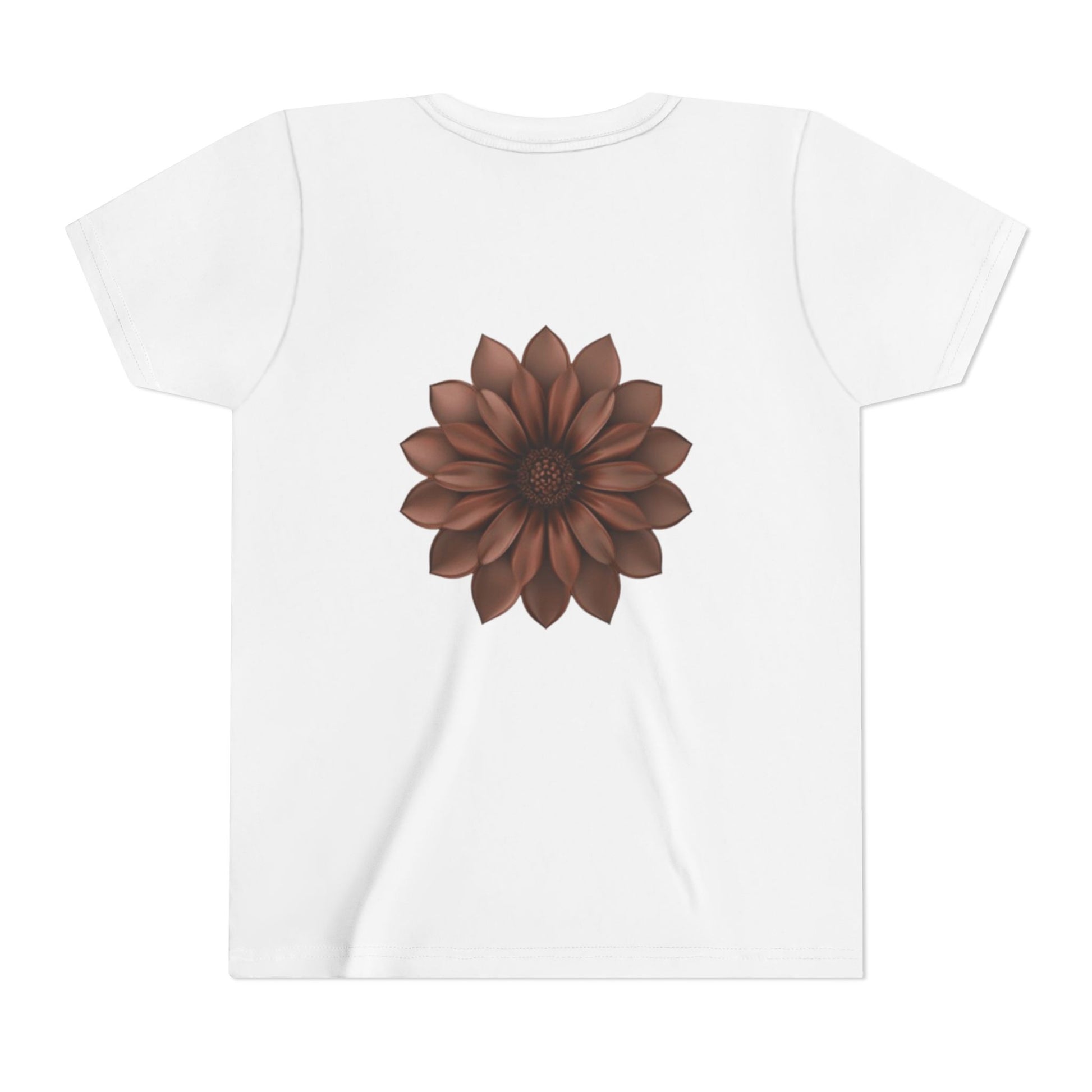Youth Tee — Chocolate Brown Floral Dahlia Graphic